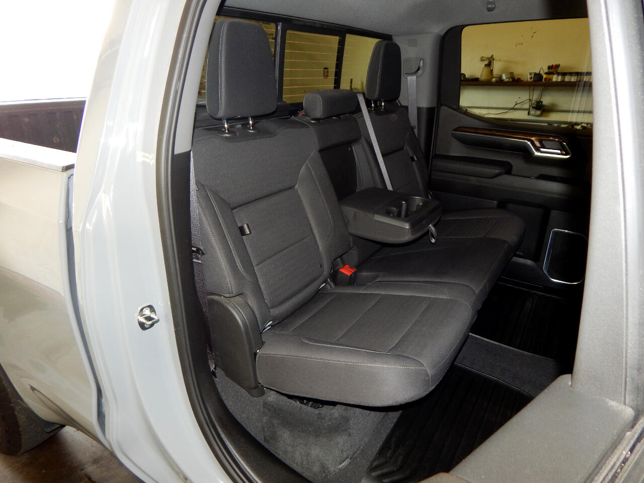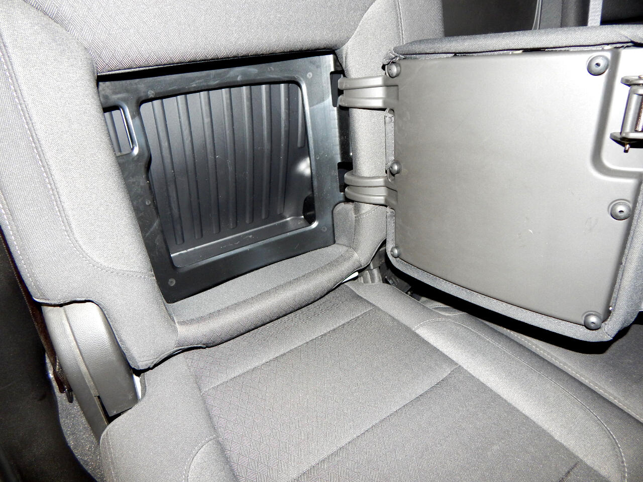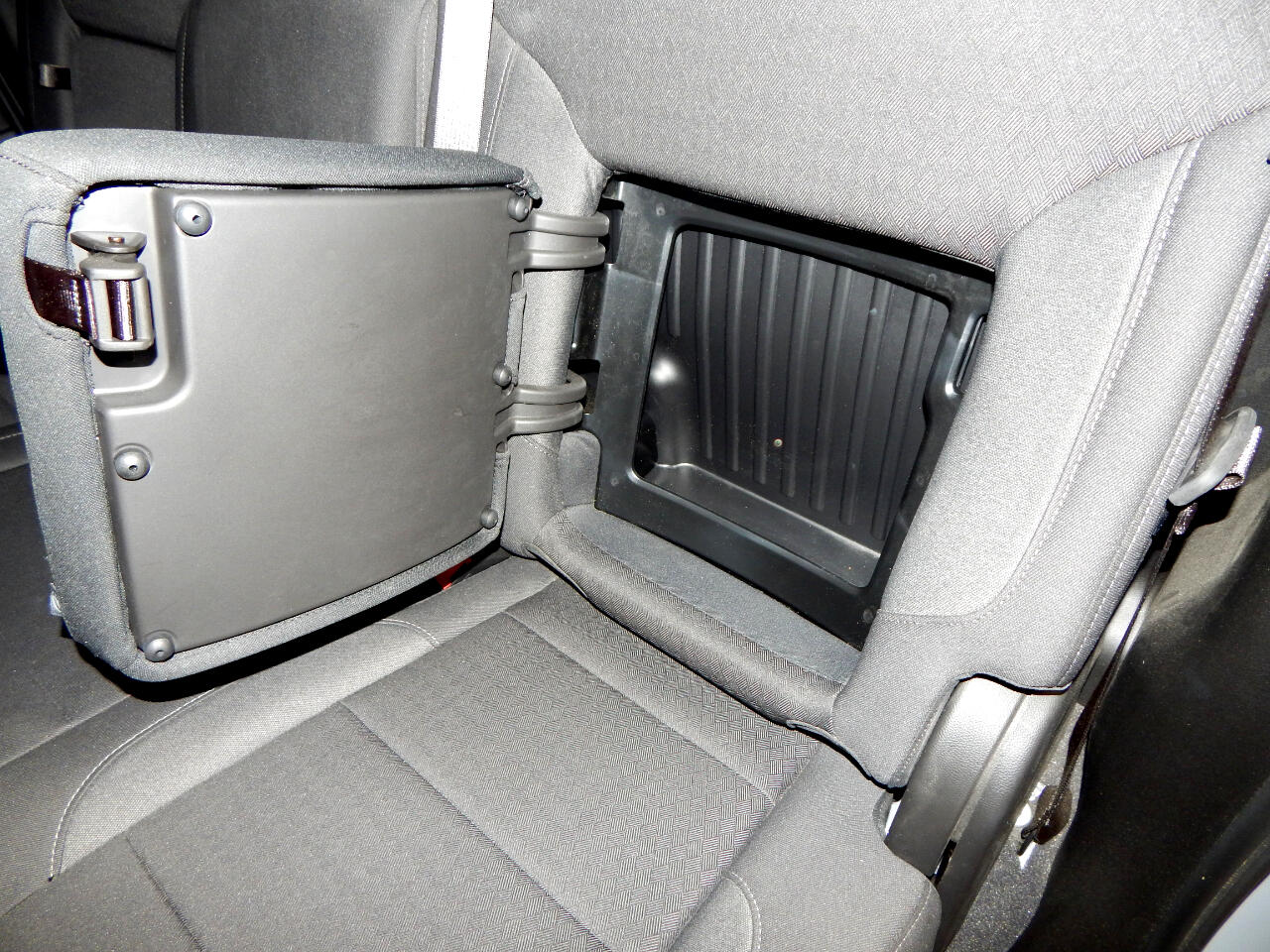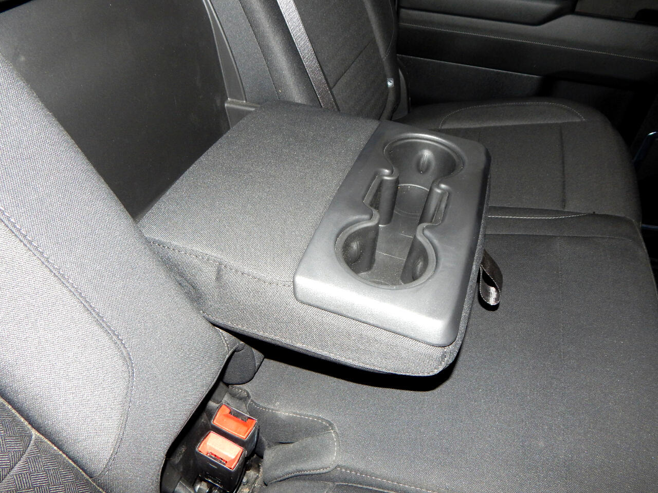 • Seat, Cloth Rear with Storage Package, 60/40 folding bench for Crew Cab models, includes seatback storage on left and right side, center fold out armrest with 2 cupholders, (includes child seat top tether anchor)